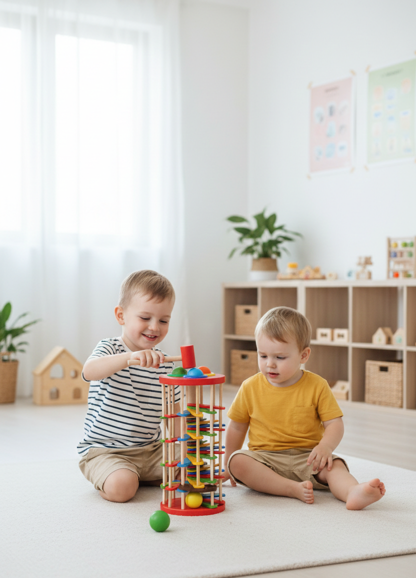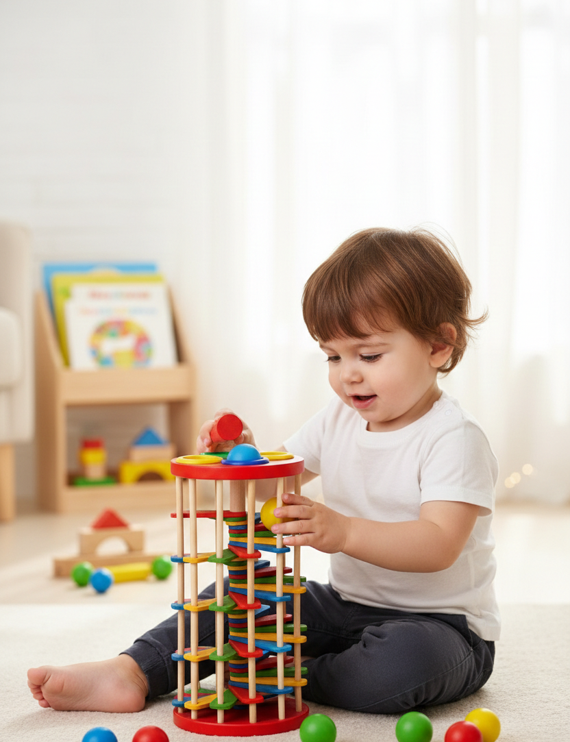 Bu özel tasarım Ahşap Top Vurmalı Merdiven Oyuncak, evinizin sıcak ortamında, miniklerin hayal gücünü ve motor becerilerini harekete geçirecek!